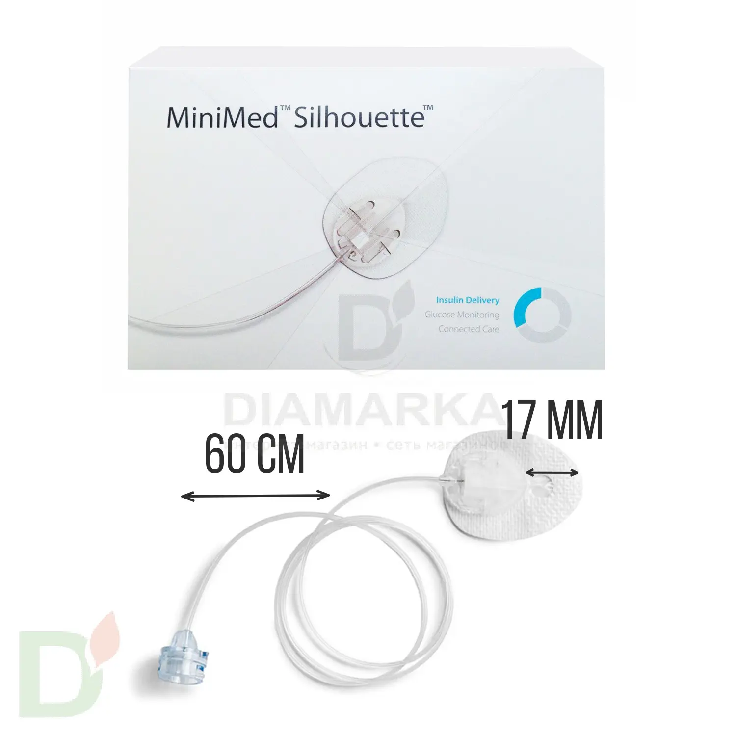 Длина канюли составляет 17 мм, а катетера 60 см. Набор рекомендуется для использования взрослыми людьми. Инфузионный набор имеет низкий профиль, закругленное основание и не выделяется под одеждой.