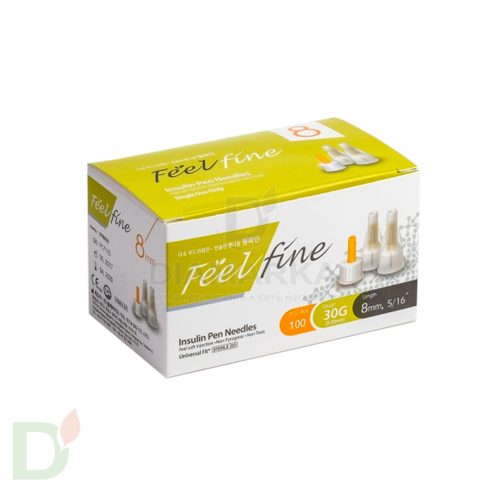 <h3>Иглы для шприц-ручек FeelFine / ФилФайн 30G, 8мм</h3> <p> Иглы FeelFine позиционируются производителем как безболезненные и атравматичные. </p> <p> Выпускаются Корейской компанией Feel Tech Bio на тех же заводах, на которых делают знакомые многим иглы BD MicroFine. </p> <ul> <li>Ручная заточка и ультразвуковая шлифовка делают иглы максимально острыми, а инъекции - безболезненными;</li> <li>Двойное силиконовое покрытие</li> <li>Ультратонкие стенки и более широкий внутренний просвет (по сравнению с аналогичными иглами) сводят к минимуму закупорки иглы;</li> <li>Подходит ко всем шприц-ручкам.</li> </ul> <br> Имеет международные сертификаты ISO и GMP. <br> <br> Гарантия: 3 года с даты производства. <br>