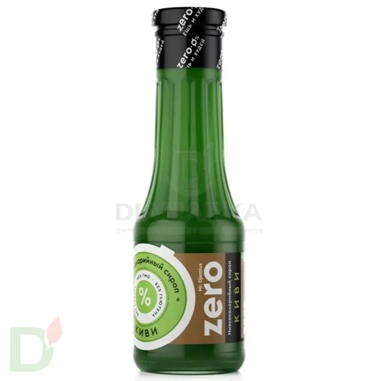 <h2>Сочный тропический киви - новинка в ассортименте низкоуглеводных сиропов ZERO</h2> Могли ли вы когда-нибудь мечтать, что во время диеты или при ограничении сахара в рационе сможете обильно сдабривать любимые блюда сиропом? Вряд ли...а теперь такое возможно! Производители продукции Mr.Djemius позаботились о вашем здоровье, красоте и удовольствии!<br> <br> Диабетики больше могут не переживать, что после употребления сладкого сиропа сахар крови стремительно поднимется, а тем кто на диете не нужно беспокоиться, что появятся лишние сантиметры на талии. Сироп также подойдет для спортсменов в период сушки и тех придерживается принципов кето питания. <br> <h2>Состав низкокалорийного сиропа ZERO:</h2> вода, сок киви восстановленный, эритрит, изомальтит, ксантановая камедь (природный полисахарид), сорбиновая кислота,лимонная кислота, ваниль, стевия.<br> <br> Сироп с соком киви особенно сочетается с десертами, молочными продуктами, кашами, оладьями, блинчиками и другими любимыми блюдами! А еще на его основе получается отменный освежающий лимонад.<br> <h2>БЖУ и пищевая ценность на 100 грамм:</h2> белки - 0,9, жиры - 0,008, углеводы - 5,2, калорийность - 21,63 ккал<br> <br> <b>Срок годности сиропа - 12 месяцев с даты изготовления.</b>